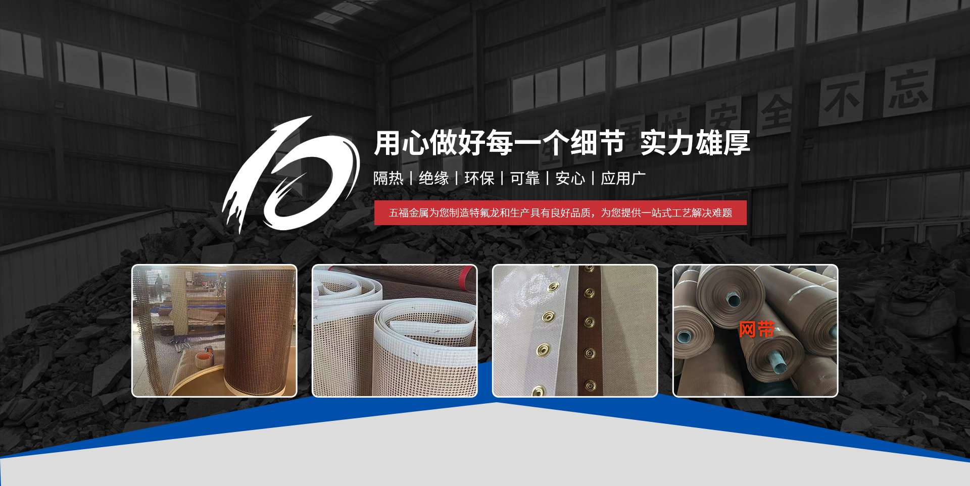 泰州市五福金屬制品有限公司位于泰興市根思鄉老葉村鞠前是一家集研發、生產、銷售為一體生產企業。主要生產銷售:硫化亞鐵,和特氟龍高溫布,高溫膠帶,膜膠帶,網帶,輸送帶等。五福不斷引進設備和技術,建立強大的研發、管理及業務團隊。品質是企業的核心力,;與客戶共同應對市場變換,并根據客戶實際要求達成共贏。公司不斷引進設備和技術以及人才,建立強大的研發、管理及業務團隊,在國內與多家大型集團企業合作。